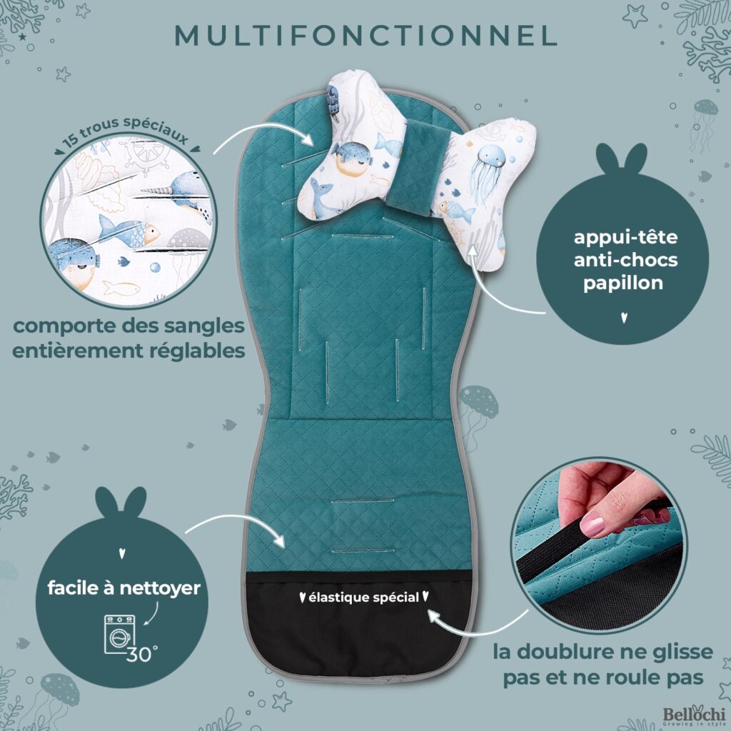 Le surmatelas d'assise pour la poussette :