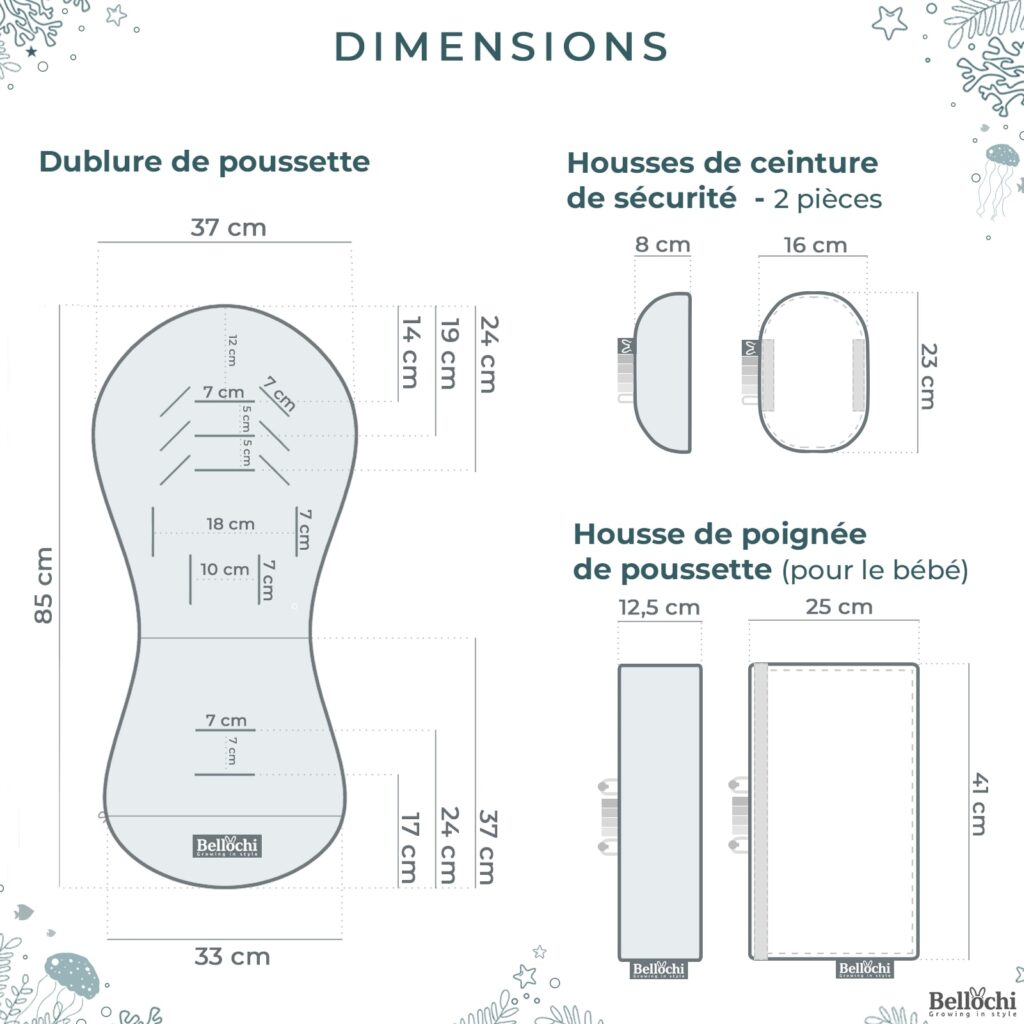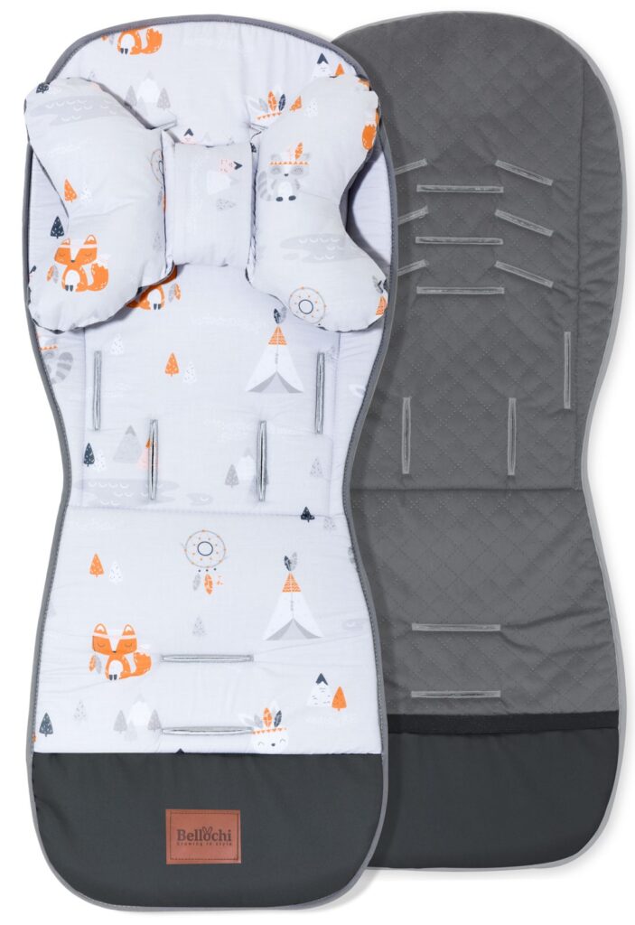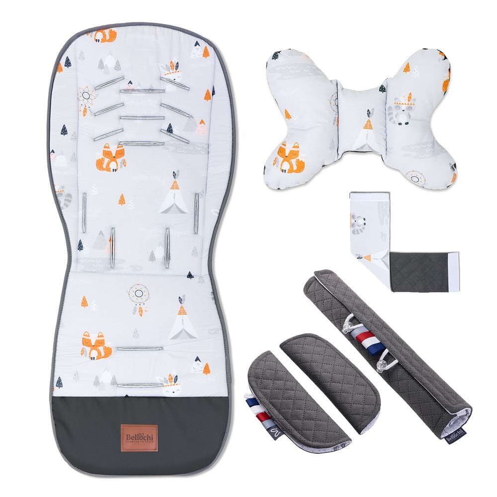 Le super ensemble pour la poussette se compose de la doublure et d’un coussin antichoc.