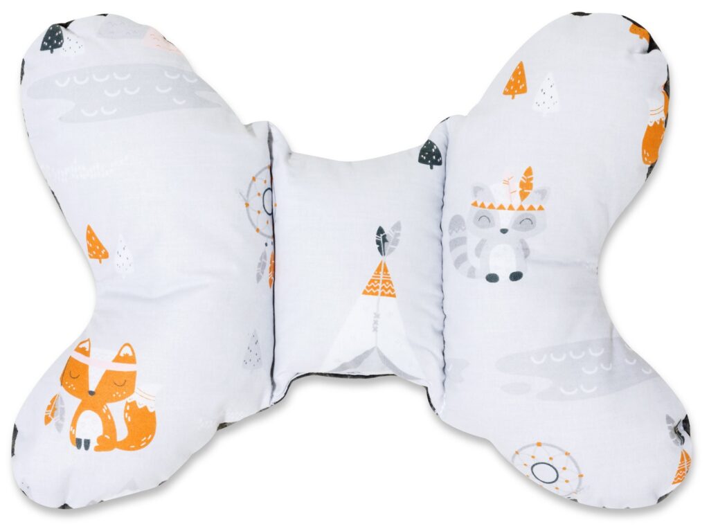 Ensemble super : une couverture de poussette universelle à double face avec un coussin antichoc en forme de papillon.