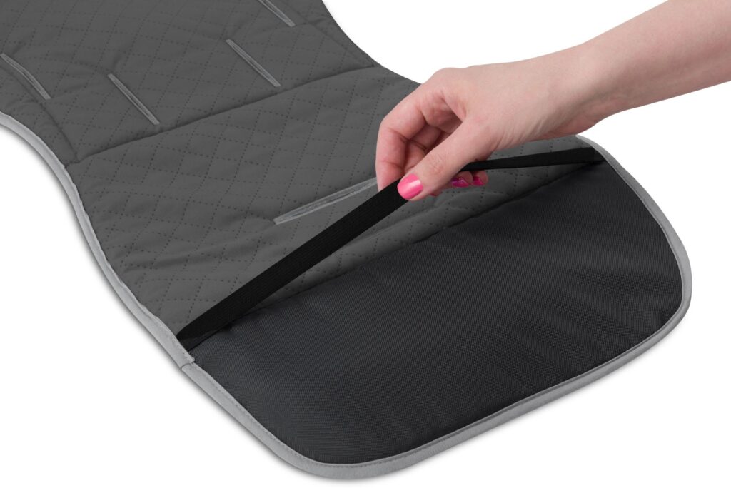 Facile à installer sur le siège – convient aux systèmes de ceinture de poussette à 3 et 5 points.