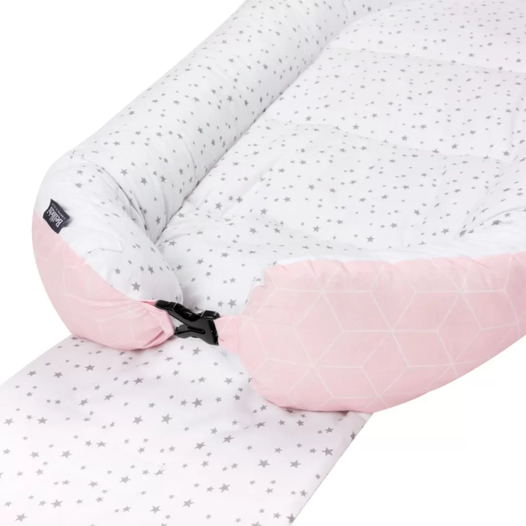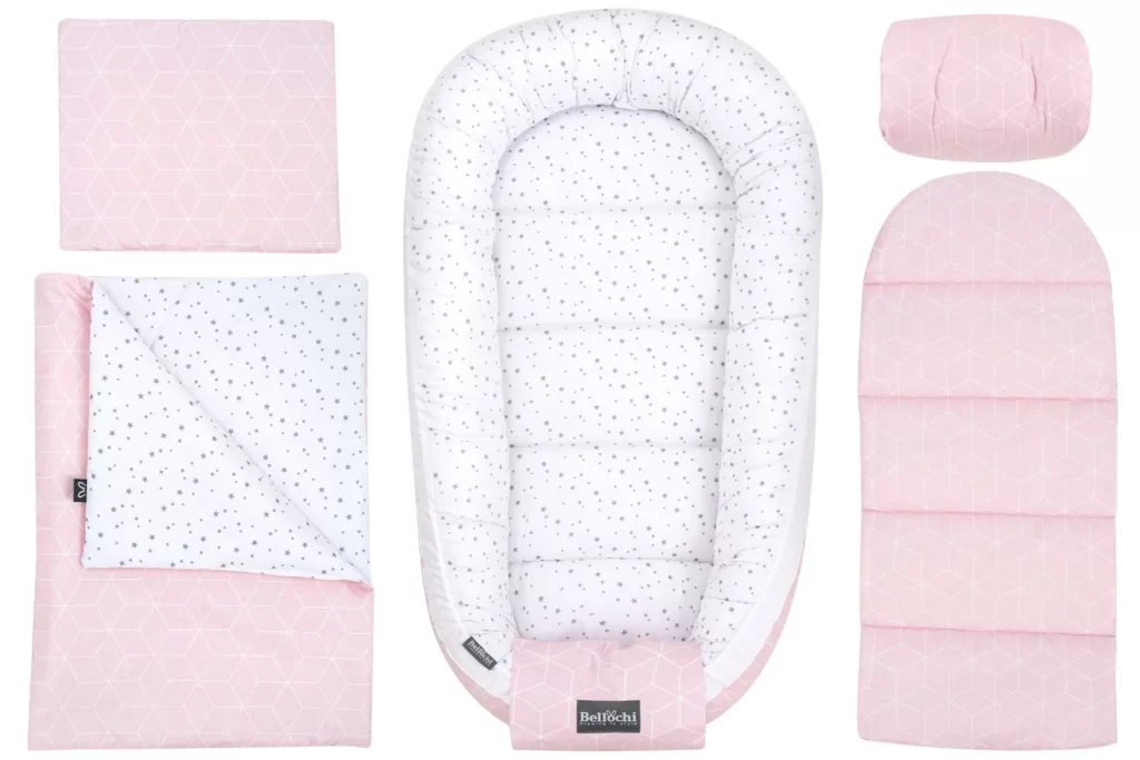 Extraordinaire, grand, double face Bellochi bébé nid, ensemble de baby shower offrira à votre bébé confort, espace sûr et un enveloppement agréable dès le stade néonatal jusqu’à 7-9 ans. mois. Le cocon bébé Bellochi permet de limiter en toute sécurité l’espace du bébé et de l’enrouler. Grâce à cela, bébé se sent aussi bien que dans le ventre de maman. Le nid de bébé peut être utilisé de plusieurs façons. C’est le meilleur endroit pour dormir, se reposer, se blottir, jouer et toute autre activité quotidienne. Ce baby pod fonctionnera dans de nombreux endroits et situations, à la maison et en voyage. L’ensemble de dosettes pour bébé Bellochi est très pratique et multifonctionnel. Fabriqué à partir de matériaux certifiés de haute qualité et sans danger pour la peau sensible de bébé. Cet ensemble layette baby shower comprend :