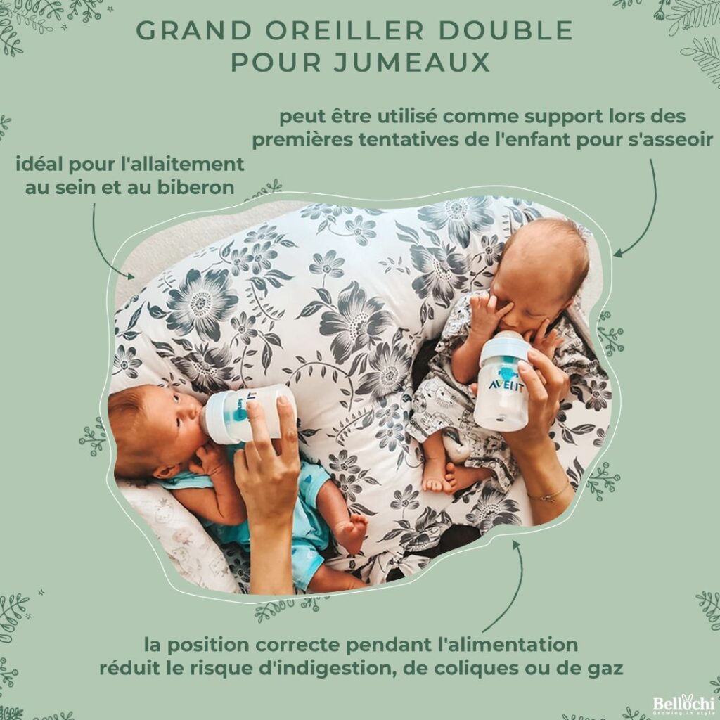 – lors d’une tétée alternée avec un biberon, le coussin peut être placé confortablement sur les genoux ou sur une surface stable, et les bébés peuvent alors être placés en toute sécurité ;
