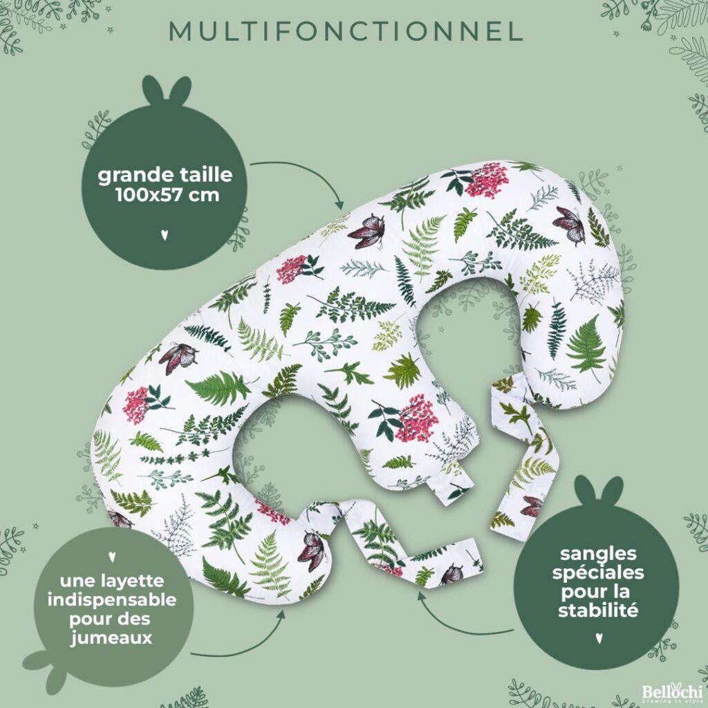 Le grand oreiller Bellochi double et multifonctionnel pour nourrir les jumeaux. Les extrémités de l’oreiller sont munies de ficelles, grâce auxquelles il adhère bien au corps. Cela vous permet de trouver facilement une position d’alimentation confortable et de la stabiliser correctement.