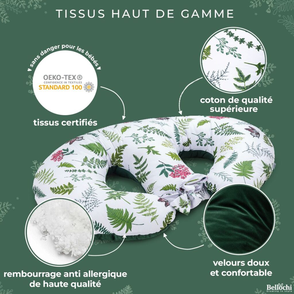 Le grand oreiller Bellochi double et multifonctionnel pour nourrir les jumeaux. Les extrémités de l’oreiller sont munies de ficelles, grâce auxquelles il adhère bien au corps. Cela vous permet de trouver facilement une position d’alimentation confortable et de la stabiliser correctement.