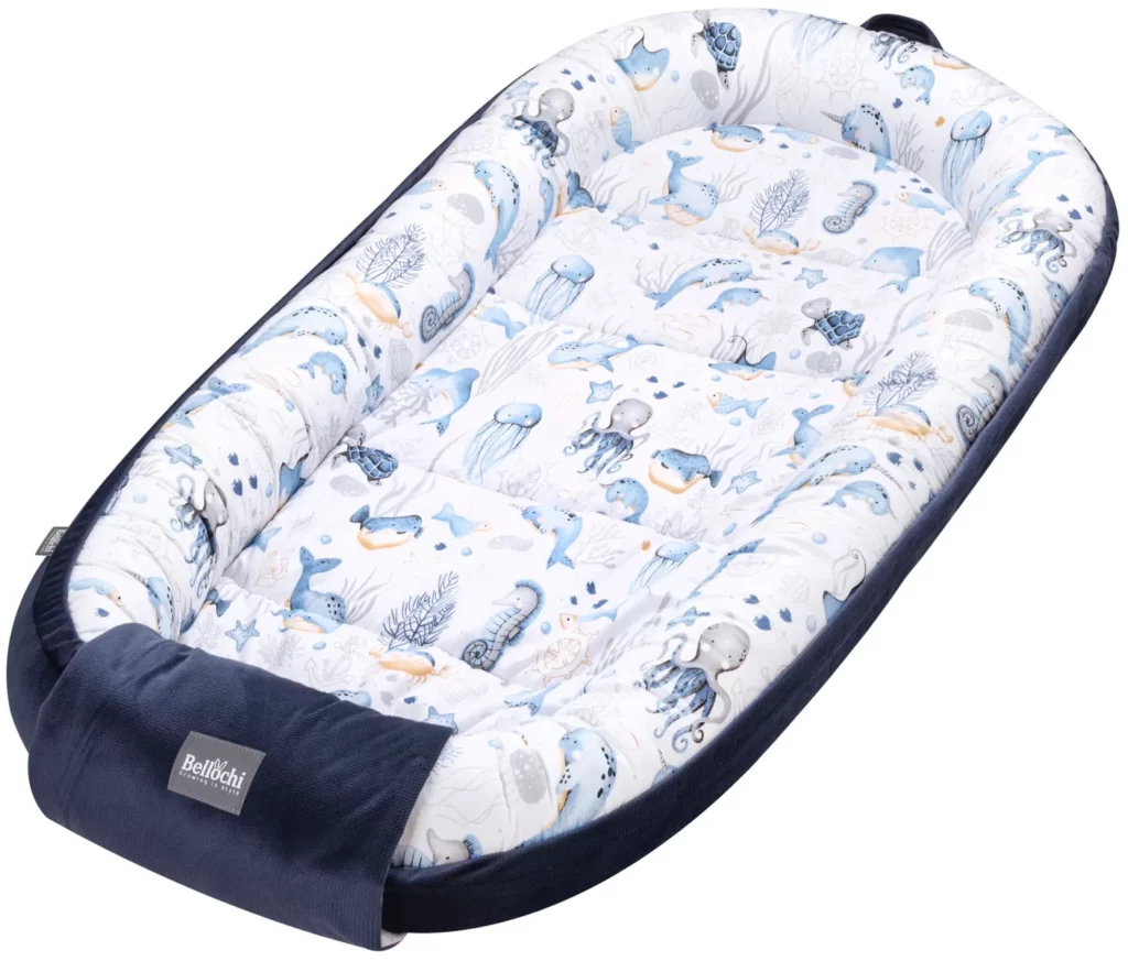 Le cocon XXL Bellochi baby nest extra large et double face offrira à votre bébé un confort, un espace sûr et un agréable enveloppement dès le stade néonatal pendant très longtemps. Notre cocon Bellochi Baby Nest XXL est l’un des plus grands disponibles sur le marché, c’est pourquoi nous dédions ce baby pod, cocon bébé jusqu’à 18 mois. La longueur intérieure de l’espace de couchage peut aller jusqu’à 90 cm et quand vous ouvrez le cocon vous pouvez avoir encore plus d’espace jusqu’à 120 cm et plus. Le cocon bébé Bellochi permet de limiter en toute sécurité l’espace du bébé et de l’enrouler. Grâce à cela, le bébé se sent aussi bien que dans le ventre de sa mère. Le nid de bébé peut être utilisé de plusieurs façons. C’est le meilleur endroit pour dormir, se reposer, se blottir, jouer et toute autre activité quotidienne. Ce baby pod fonctionnera dans de nombreux endroits et situations, à la maison et en voyage. Le baby pod Bellochi est très pratique et multifonctionnel. Fabriqué à partir de matériaux certifiés de haute qualité et sans danger pour la peau sensible de bébé.