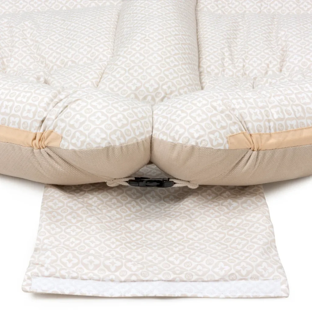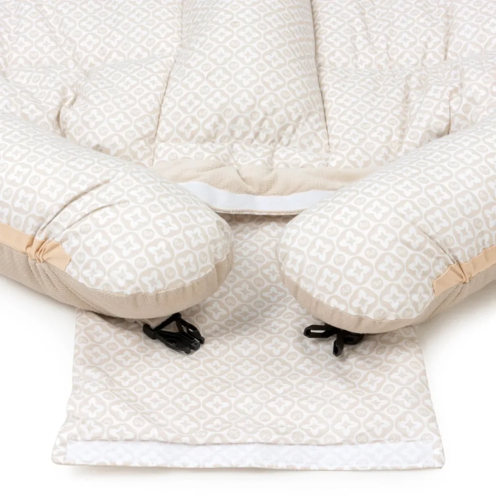 Un nid pour bébé ne peut pas être utilisé comme un porte-bébé, pour des raisons de sécurité – il est interdit de porter un bébé dedans. Il doit être utilisé sous la supervision d’un adulte. Ne laissez jamais votre bébé sans surveillance. Le cocon ne protège pas contre les chutes et n’est pas recommandé pour un repos nocturne.