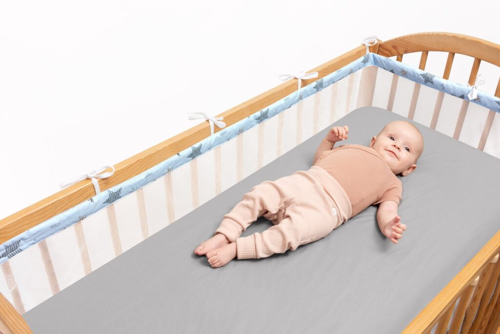 Pour le tour de lit de 180×30 cm, la moitié, soit 60cm peut être placée à gauche et l’autre moitié à droite. Notre tour de lit de plus grande taille (360x30cm) peut également être placé sur les lits pour bébé de taille standard, de sorte qu’il soit placé tout autour du lit de bébé pour assurer encore plus de protection.