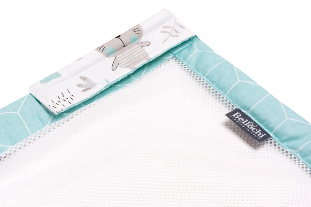 kolko-green.png Montage stable. La protection des bords peut être fixée esthétiquement et solidement au lit d’enfant grâce à de nombreuses sangles de 25 cm de long en haut et en bas. Grâce au grand nombre de sangles, le tour de lit peut être fixé facilement, en toute sécurité et de manière pratique au lit d’enfant, et la fermeture velcro apporte un renfort supplémentaire et maintient le tour de lit au bon endroit. Par conséquent, il ne glisse pas, ne dérange pas et ne restreint pas l’enfant…
