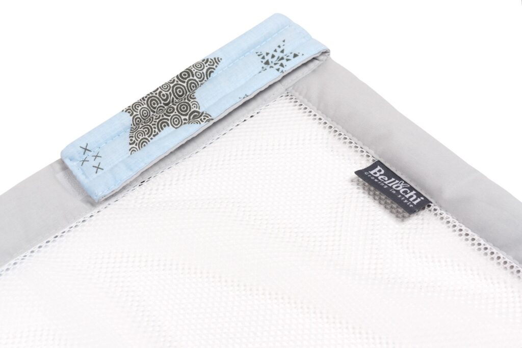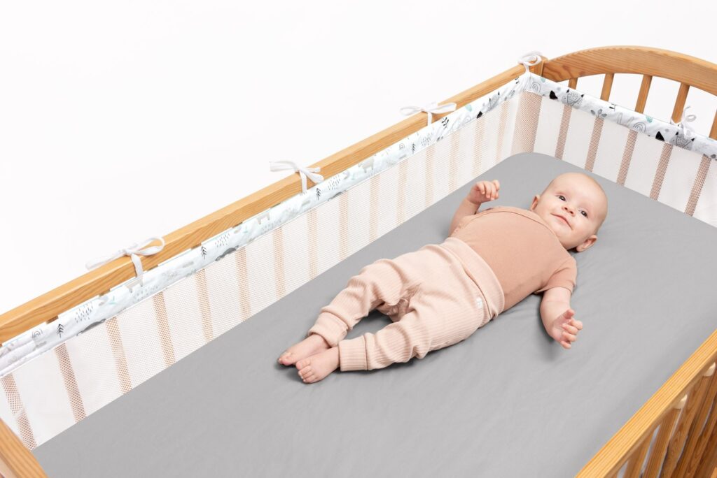 Le tour de lit peut être adapté à la forme et aux dimensions d’un lit d’enfant standard de 60×120 cm.