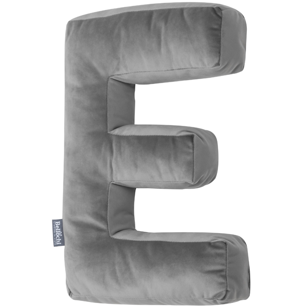 Oreiller décoratif en velours en forme de lettre E gris foncé