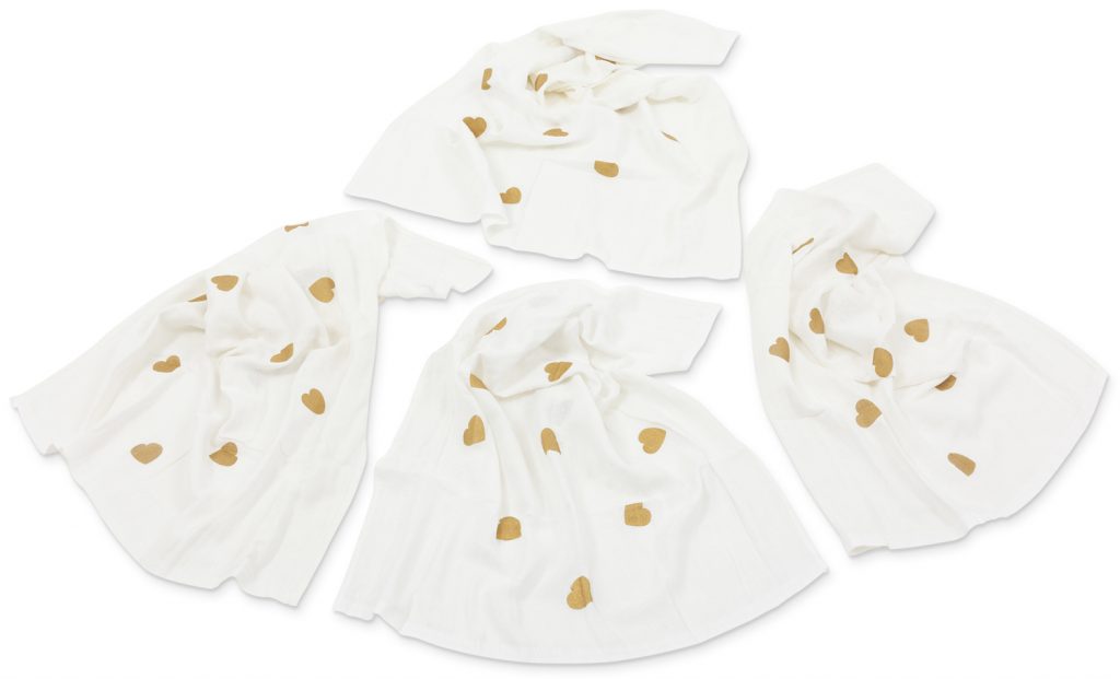 L’ensemble se compose de quatre pièces de langes en mousseline de coton, emballées dans une boîte.