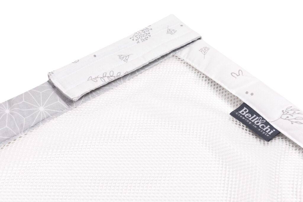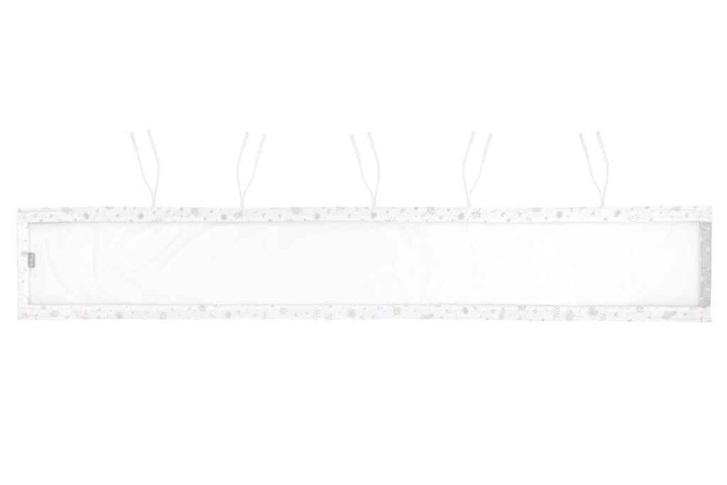Le tour de lit peut être adapté à la forme et aux dimensions d’un lit d’enfant standard de 60×120 cm.