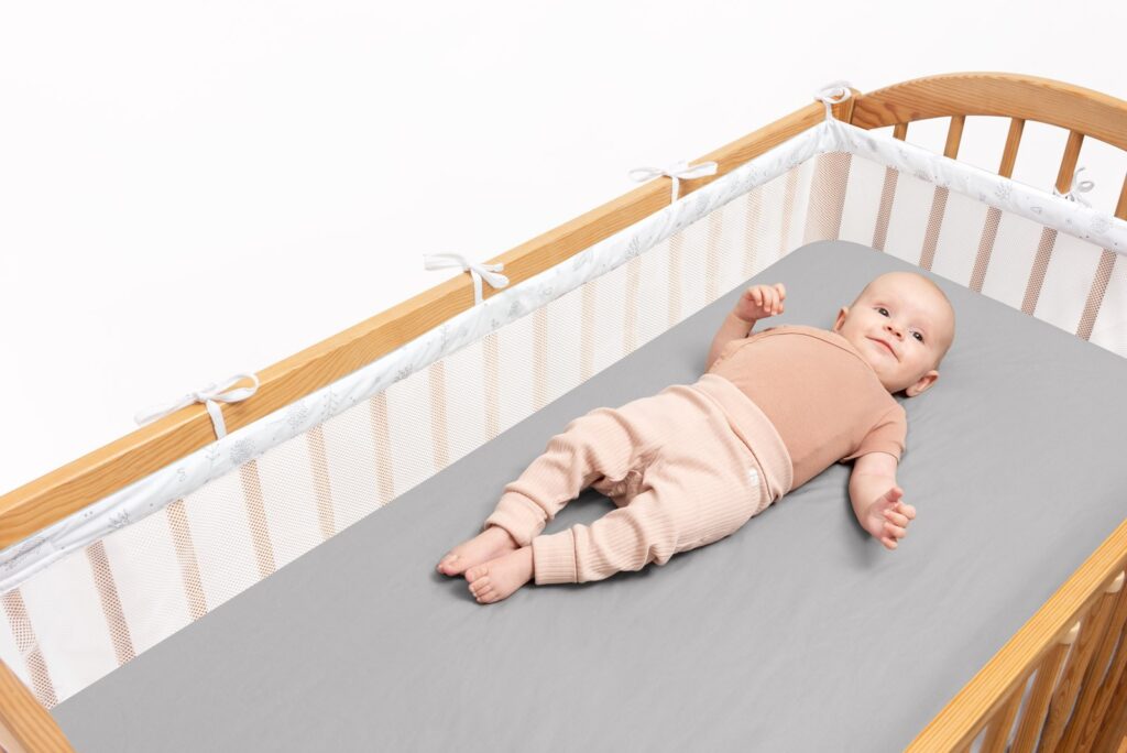 Pour le tour de lit de 180×30 cm, la moitié, soit 60cm peut être placée à gauche et l’autre moitié à droite. Notre tour de lit de plus grande taille (360x30cm) peut également être placé sur les lits pour bébé de taille standard, de sorte qu’il soit placé tout autour du lit de bébé pour assurer encore plus de protection.