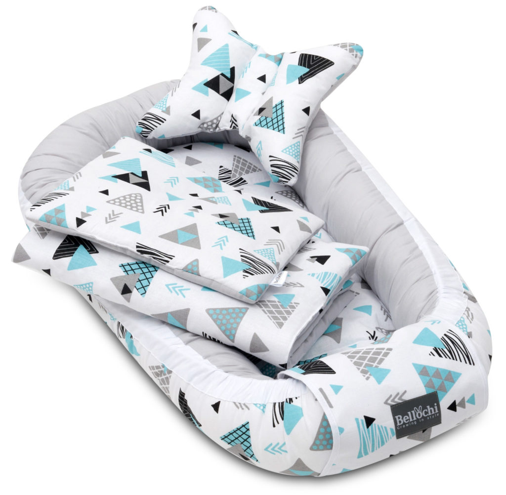 En cas de nécessité de lavage, il est beaucoup plus facile de laver le matelas que l’ensemble du cocon. Le coussin amortisseur en forme de papillon stabilise, protège et s’adapte à la forme de la tête de votre bébé. Il manque seulement une petite chose pour que votre tout-petit tombe dans un sommeil paisible et sain. Le complément à notre ensemble est une couverture avec un oreiller plat.